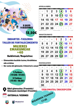 Aurrekoetan apuntatu ez direnek lehentasuna izango dute / Tendrán prioridad las que no hayan estado inscritas en los anteriores talleres de fortalecimiento.