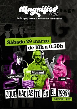 Crocoman, Tini y Monamí repiten la exitosa fórmula: Los grandes éxitos del 95 serán el hilo conductor de una sesión que estará plagada de clásicos atemporales y de los hits de más rabiosa actualidad. El año en el que Los Planetas lanzaron "Nuevas Sensaciones" nos traerá otro fiestón increible en el mejor fiesta indie de la ciudad.